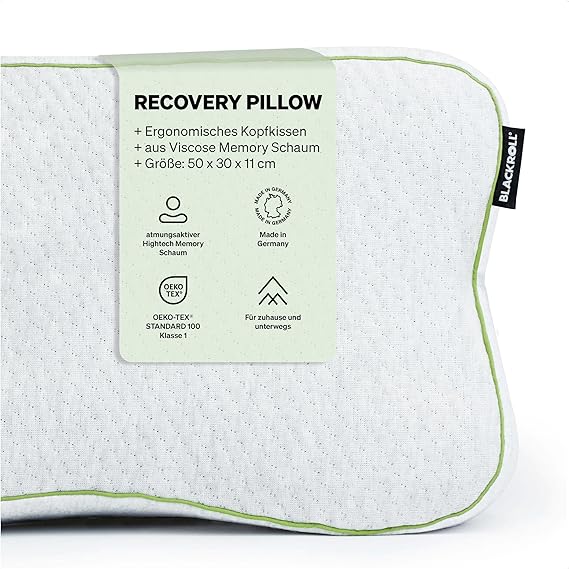 BLACKROLL Recovery Pillow – Orthopädisches Nackenstützkissen mit ergonomischem Design, viskoelastischem Schaum, abnehmbarer Bezug, ideal für Tiefschlaf und Entlastung bei Verspannungen.
