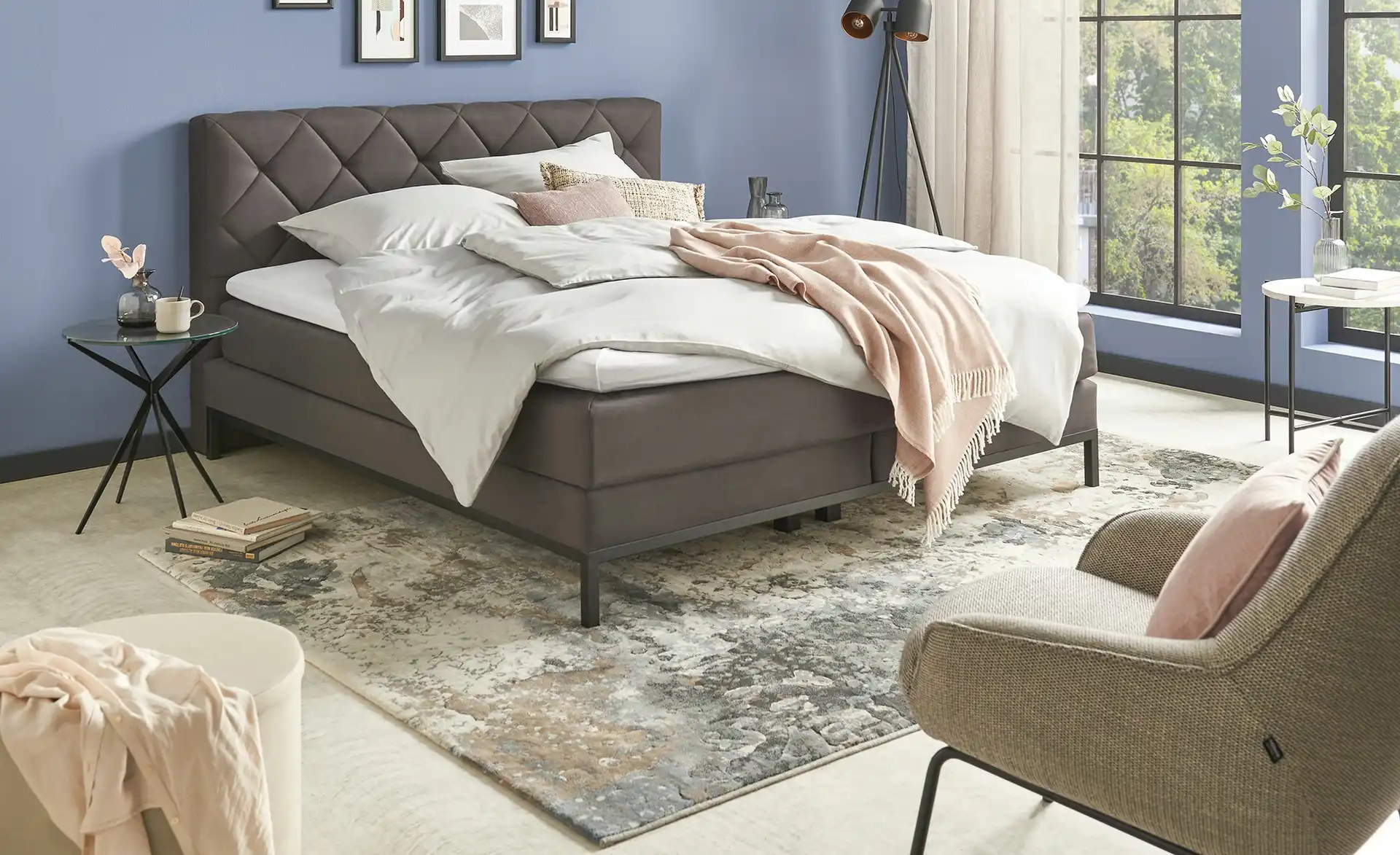 Das uno Boxspringbett Rockaway kombiniert modernen Glamour-Look mit komfortabler Liegehöhe und anpassbarer Duett-Matratze für weiche oder feste Schlafvorlieben. Ideal für alle, die ein kompaktes 140x200 cm Bett mit Taschenfederkern-Komfort suchen. hoeffner.de