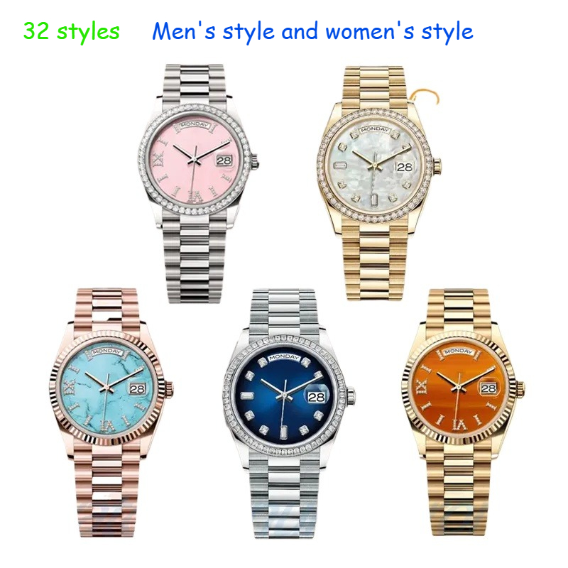 ساعة يد رجالية أوتوماتيكية ميكانيكية 36/41 بوصة 904L فولاذ مقاوم للصدأ مع إطار ماسي مقاوم للماء وساعة ذهبية مضيئة