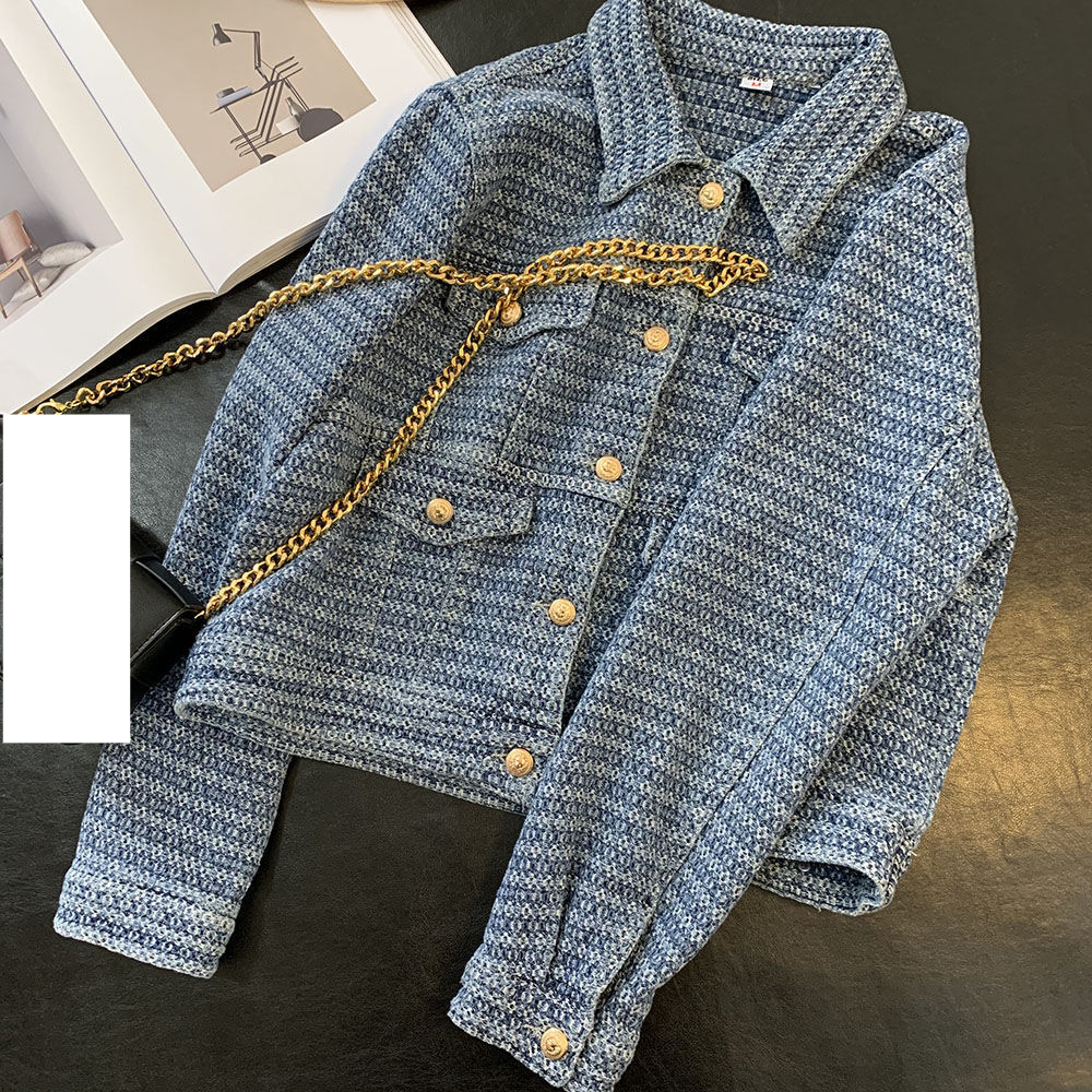 ملابس نسائية - جاكيت جينز ثقيل منسوج جديد بتصميم فضفاض متباين - جاكيت خارجي قصير للنساء