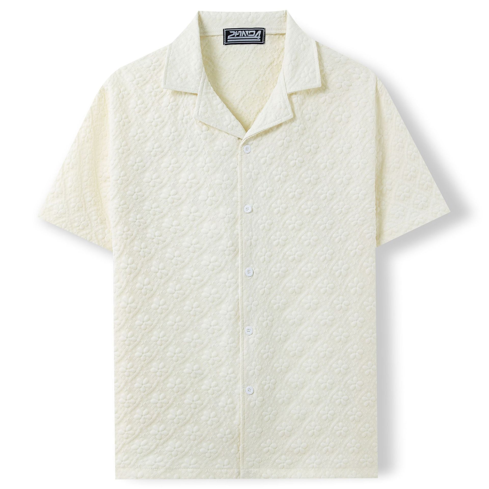 ملابس الرجال [تروبيكانا] قميص رجالي بكولار كوبي - بأكمام قصيرة من جاكار قابل للتنفس | ملابس منتجع وعارضة