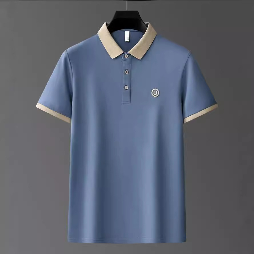 ملابس رجال - قميص بولو صيفي جديد للرجال بأكمام قصيرة عمل غير رسمي بياقة متباينة قميص توب عصري بأكمام نصفية